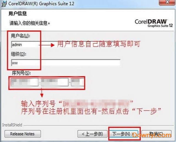 第四步:CorelDraw12【Cdr12】用户信息的输入用户信息自己随意填写。序列号输入正确后点击“下一步”按钮。