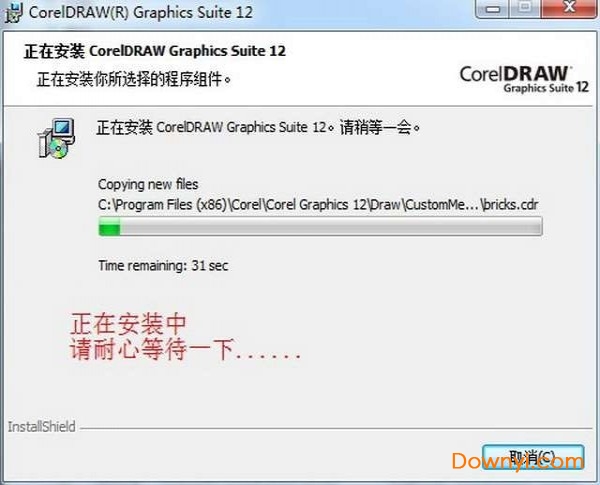 第八步:正在安装CorelDraw12【Cdr12】正在安装CorelDraw12中请耐心等待一下......。