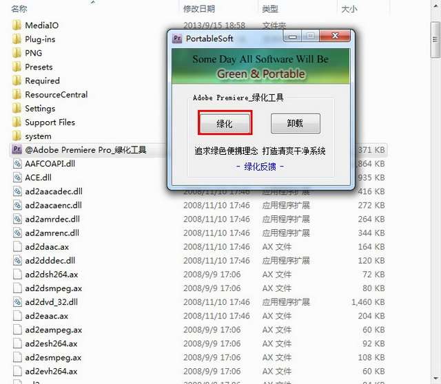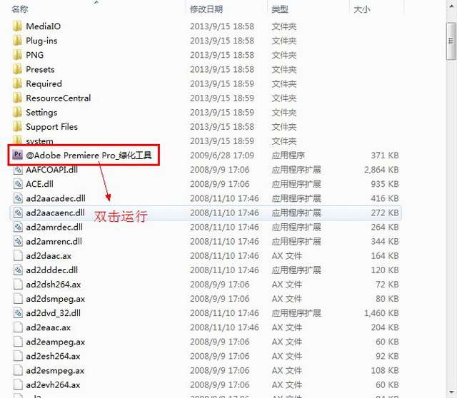 1,运行cs4安装文件夹里的@adobe premiere pro_绿化工具.exe文件。