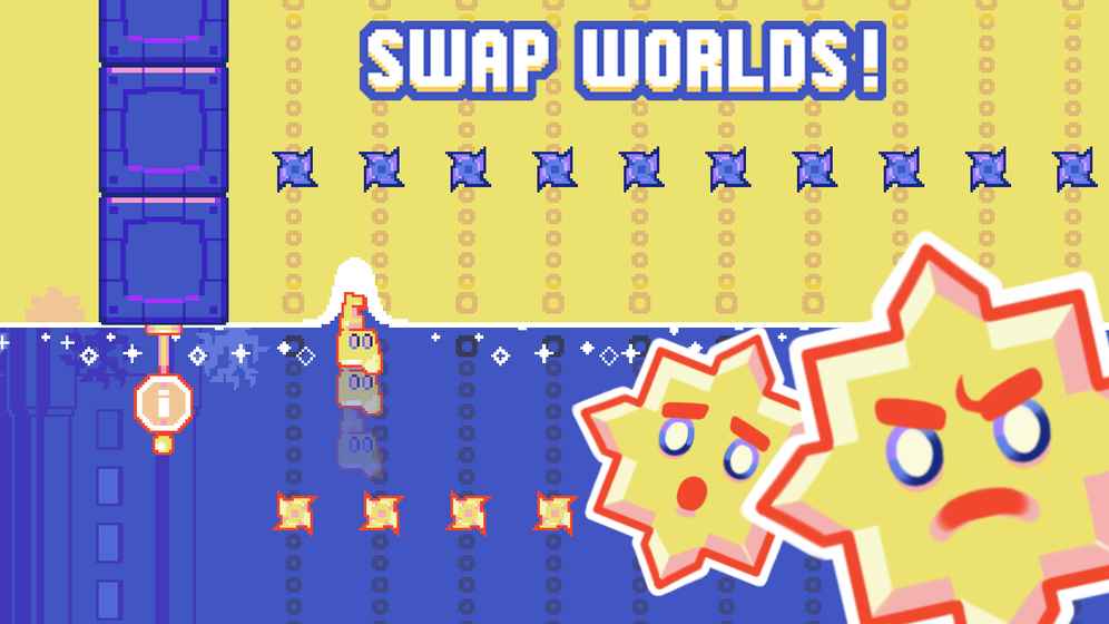 《交换跳跃》是由Nitrome出品的一款益智休闲游戏。在游戏中,主角因为一种神秘的力量被传送到了另一个世界,他可以穿梭于重力与反重力两个世界,玩家通过收获的宝石可以用来购买存盘点,否则死了就只能从头来,游戏采用滑动操作,略微不顺手。