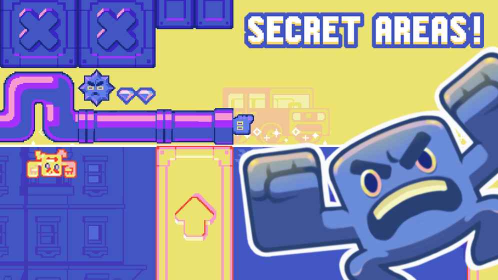 毫无疑问这是一款致敬经典的游戏。像素画风和类似于超级马里奥的闯关型经典玩法,配合主色调黄金黄和炫光紫,横版跳跃、收集钻石、关卡存档,简单复古却有魔力般停不下来。