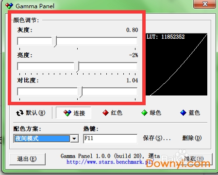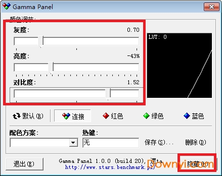 gamma panel是一款简单易用的幕亮度调节工具,gamma panel支持灰度,亮度,对比度的自定义调节、支持红绿蓝三色通道更改、支持一键恢复默认设置。gamma panel利用热键来操作,所以可以让调节随心所欲,对于在不同的工作环境下要求不同的显示器状态以及显示器性能下降的用户很有帮助。