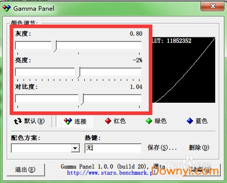 提示:个人感觉亮度和灰度这两个选项作用比较大,对比度不需要调节。如果只是用来保护眼睛,调节亮度就足够了。要善于用左右键微调,最好不要用鼠标拖动调节。