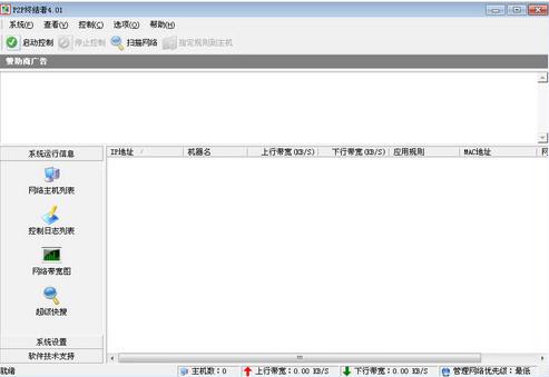 4、进入主界面,你只需要点击“启动控制”按钮,那么局域网内所有主机的接入互联网带宽都尽在掌握中了。