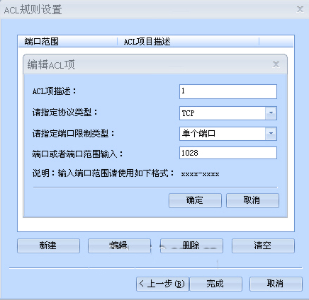 8、acl规则设置可以让你设定需要控制的协议类型及端口范围。