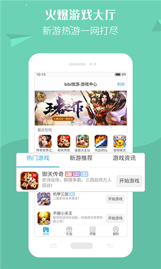 bibi微游手机版是一款专为玩家提供h5游戏的手机游戏平台,bibi微游游戏中心由专业的游戏运营团队运营,每天为您的推荐新鲜、热门、好玩的H5游戏。更有超多精彩礼包、资讯,还在等什么,欢迎来试用。