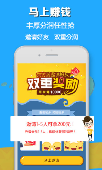 4、分享赚钱:邀请好友赚取双份分润,边收款坐享分润。