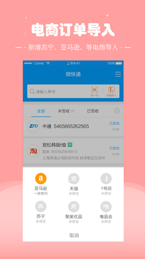 您也可以直接一键导入淘宝、京东、唯品会、聚美优品等电商的订单