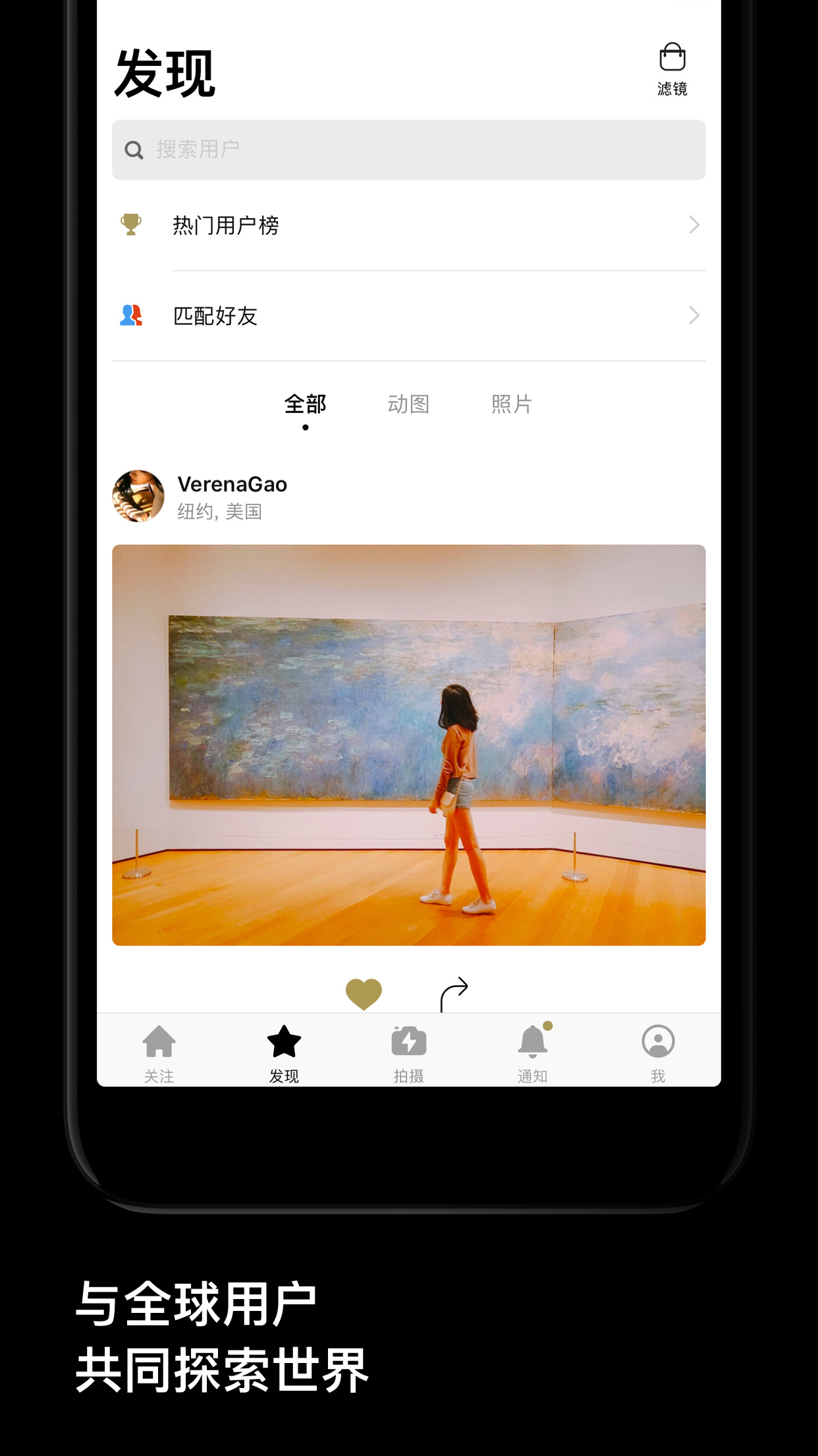 发现全世界:在「发现」页面中,您可以看到我们为您精选的 vlog 以及其它来自全球的精彩作品。