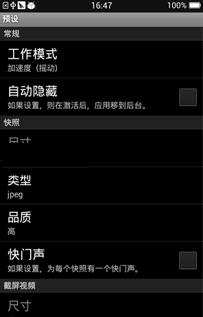 4、支持摇晃/语音/光感/视频4种截图模式;