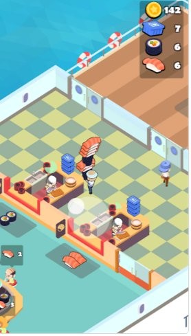 2、完成游戏发布的任务,享受美味的寿司,烹饪新的寿司.