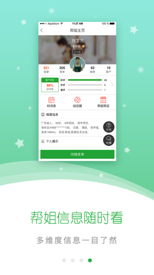 便捷:50000+帮姐任选、订单实时推送、1分钟响应竞单像预约专车一样预约阿姨