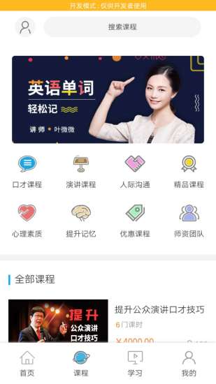 提供演讲口才、人际沟通、心理素质、高效记忆、科学发声、销售、礼仪、亲子等课程的在线应用,满足广大爱好演讲口才,又抽不出时间的朋友们随时随地学习演讲口才知识不断增长的体验需求,我们拥有众多课程高清视频,画面清晰,播放流畅视频教学,让你随时随地到哪里也能学到专业的知识,既有专业教师讲授的各类专业课程,也有面向学员的普及课;高清交互式视频直播、笔记、线上回课等功能,为学员提供丰富、有针对性的学习选择。