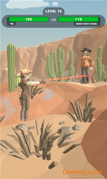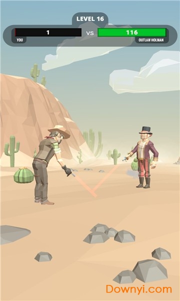 甩枪对决手游低模像素画风体验别具一格的对枪玩法。在这里玩家将扮演一个西部牛仔,不断地与各种各样的枪手进行对决,比拼谁的枪法更加精准,瞄准你的对手扣动扳机争取一枪解决,整体游戏操作简单,易于上手,完美匹配各种年龄段的玩家。