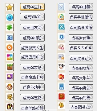 2、其中分为QQ产品类图标、游戏类图标、增值服务图标以及支持自动秒点的图标等等几大分类,并且以后会不断更新。