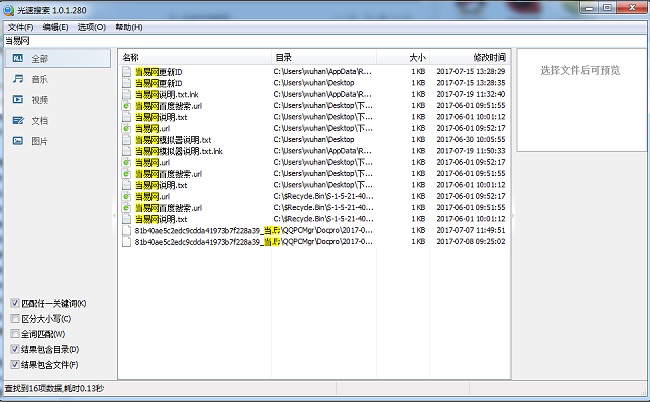 2、可以搜索文档、图片、音乐、视频等四类文件
