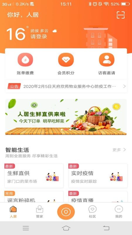智慧人居app可以远程管理各种智能家居设备,还可以设置电子门禁卡,提供线上管家服务,报名参与小区活动,查看附近热门商家,快来试试吧!