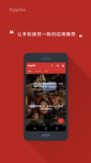 AppSo是一款推荐手机应用的app,你以为你的手机只能刷微博点外卖么,在Appso,你可以找到很多新奇有用的应用,创造属于你的应用清单,让你的手机无所不能。喜欢的朋友快来试用吧。