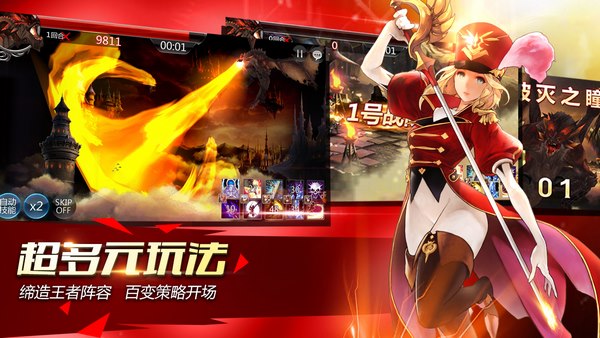 ---多元玩法带来不同乐趣,玩家可以体验华丽的PVE冒险(闯关模式、无限之塔、特殊副本、首领战),热血紧张的PVP战场(攻城战、决斗场、BOSS战、公会战),随心所欲想战就战!