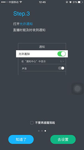 主播账号登录成功之后会提示三个权限设置,按提示设置之后方可直播