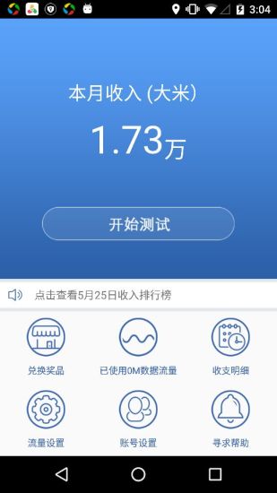 只要点击开始,就能自动赚钱。点击开始测试,将会自动开始做任务,通过做任务过程中消耗的流量,系统将会结算给您相应的大米。