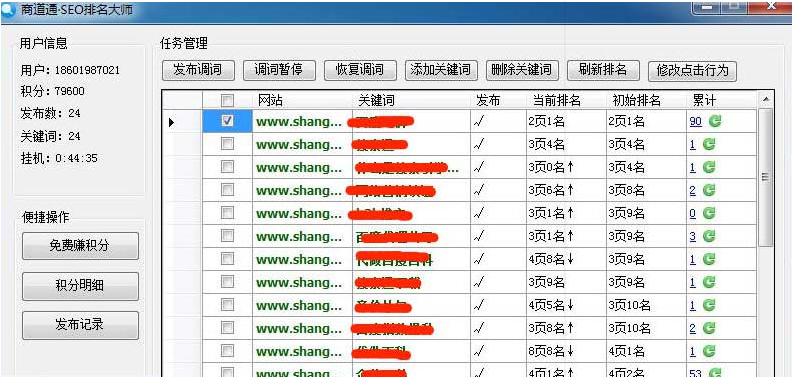 使用简单,操作方便,自动升级,永久免费,估计赚积分自动优化关键词排名。