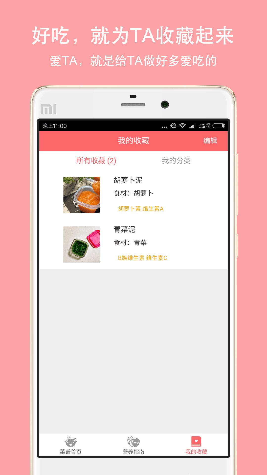 【辅食收藏】帮助家长们记下自家宝宝爱吃的辅食食谱,方便下次查阅,节省时间。