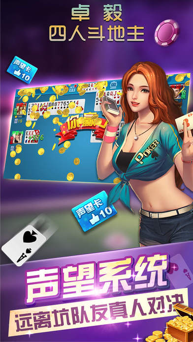 卓毅四人斗地主是一款由卓毅网络推出的卓毅棋牌类的扑剋斗地主手游,这是国内目前最好玩的四人斗地主游戏了,游戏中是完全没有系统机器人的,和你对战组队的都是真实的玩家,而且还有着分数天梯的设计,你不会再遇到水平和你不再一条线上的队友了,现在就来下载卓毅四人斗地主安卓版体验一下吧。
