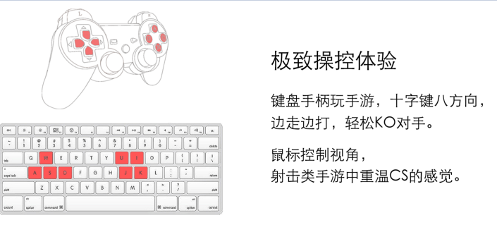 5.键盘操控(方便触屏游戏使用)、摇一摇、截取屏幕、我的电脑、关闭所有应用、apk快速安装;