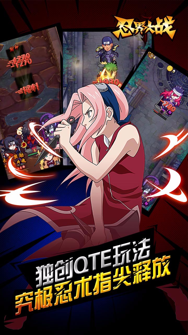 最高度的剧情还原!最q萌的卡牌画风!可爱的小樱,搞怪的鸣人!无论男女都会立即爱上他们!最新颖的卡牌玩法!掌中微操,指尖大招!最多元的卡牌养成!独家特制符文系统,卡牌的成长方向由你说了算!快来一起守卫木叶村吧!