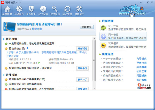 驱动精灵2011引擎革命性的新增了硬件设备问题判别的功能与相应算法,使之在用户电脑存在驱动问题时发挥出更大作用。