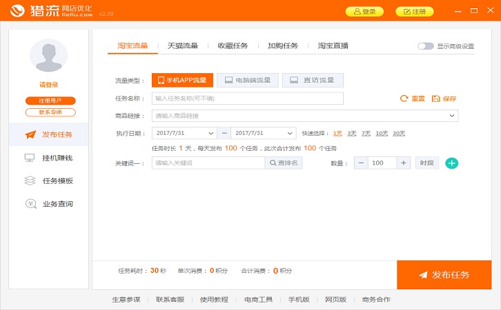 猎流,刷店铺流量收藏-淘宝流量软件主要是针对淘宝卖家开发的流量工具。完全模拟真实操作搜索关键词浏览,软件集合了淘宝卖家所有流量渠道功能应用,淘宝天猫自然搜索流量、真实优质搜索流量,全自动深度浏览。 由于保证了流量的真实性,无需担心降权,安全可靠,绿色免费。