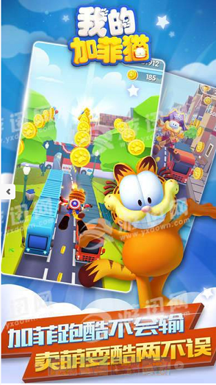 《我的加菲猫》是一款Q萌美术风格的跑酷游戏。 游戏画面绚丽精致,以3D卡通风格呈现;游戏美术表现十分可爱。游戏色彩特效搭配让人很舒服,呆萌的角色和丰富的场景让人眼前一亮。 游戏操作上非常顺畅,干净利落,单手即可完成整个游戏操作。通过简单的向上划,向下划,向左向右划来躲避障碍,在此过程中,你可以收集游戏中的资源和道具,提升角色的实力。