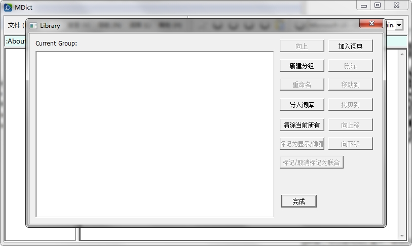 如果需要同时查询多个辞典,需要现在词库管理中创建一个分组,然后将需要同时查询的辞典放入到这个分组内,再将该分组设置为联合模式。