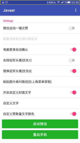 微信运动一键点赞,电脑登陆自动确认,封面自定义,文字自定义,颜色自定义,主要是因为有人通过作弊,修改98800,取得冠军,本应用可以阻止冠军的装X封面,也可以伪装冠军,需要xposed.