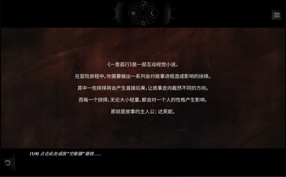 一意孤行是由Nova-box制作的一款冒险解谜类游戏,游戏中有多个不同的选择和结局出现,由超过400张手绘图片出现。玩家还可以改变自己的造型,让达芙妮以自己喜欢的形象出现。