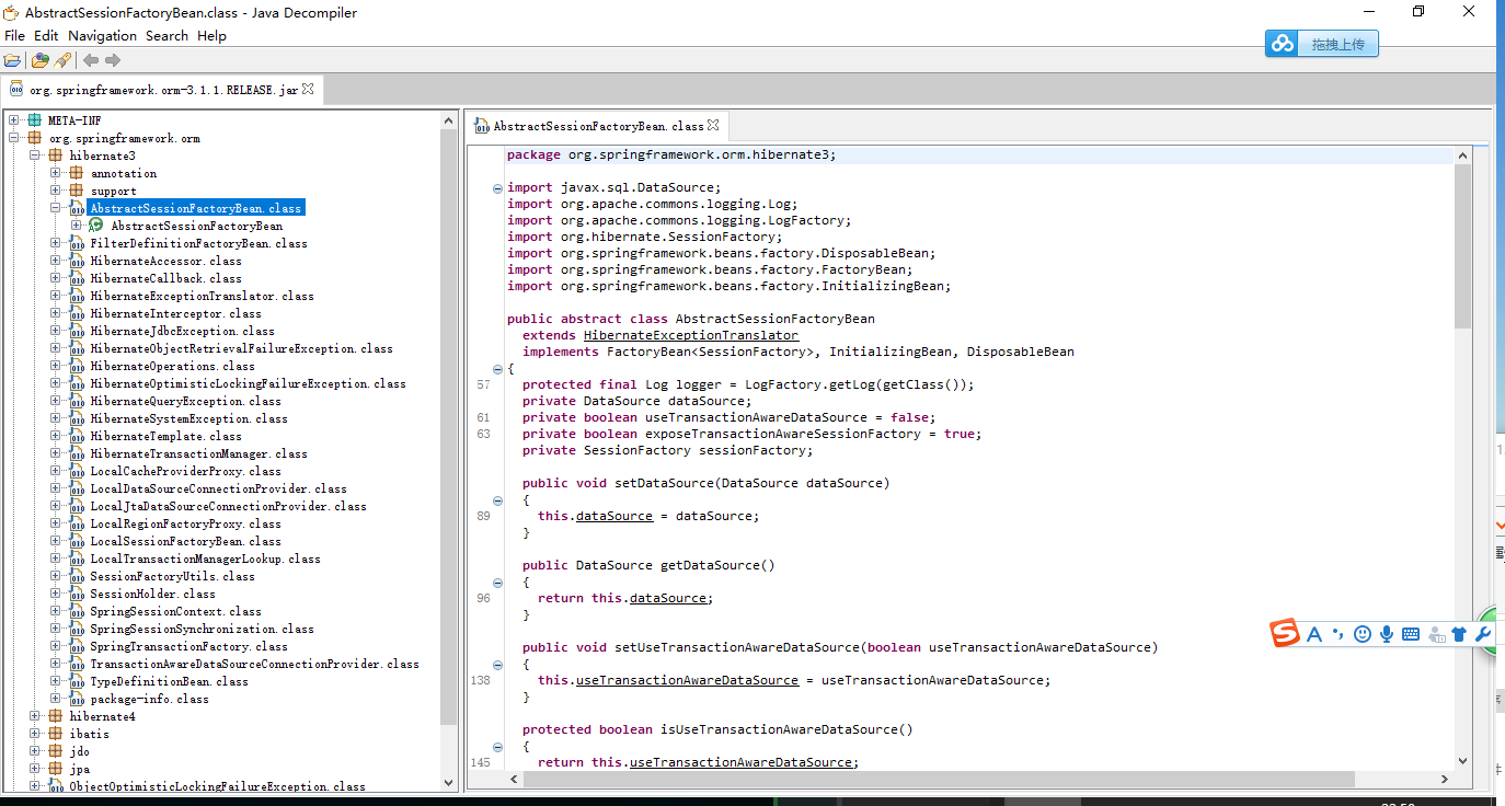 2、支持对整个Jar文件进行反编译,并本源代码可直接点击进行相关代码的跳转;