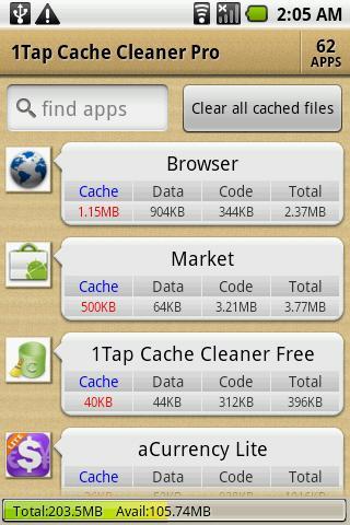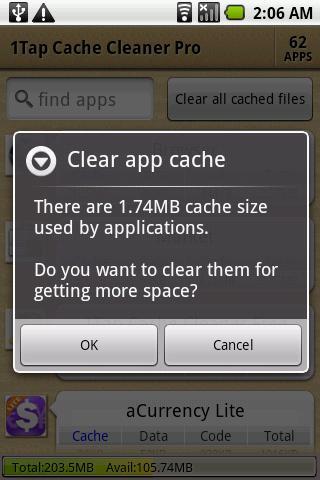 清除手机缓存工具aCCleaner Pro (Cache Cleaner)是一款安卓平台上操作非常直观的缓存清除工具,能够自动清除指定的时间间隔在所有缓存文件,或者一键单击清除所有缓存文件,如果某个应用软件使用超过500K字节的高速缓存大小,还能够在启动时通知您!可谓是直观和实用。
