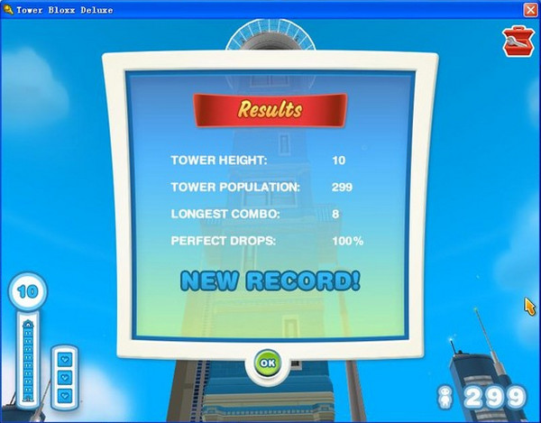 都市摩天楼中文版是Digital Chocolate趣味手机动作游戏发行了的PC版本的一款休闲游戏。游戏主要是以休闲娱乐为主,所以游戏本身难度并不大只需按一个键即可完成操作,非常非常容易上手,可谓老少皆宜。