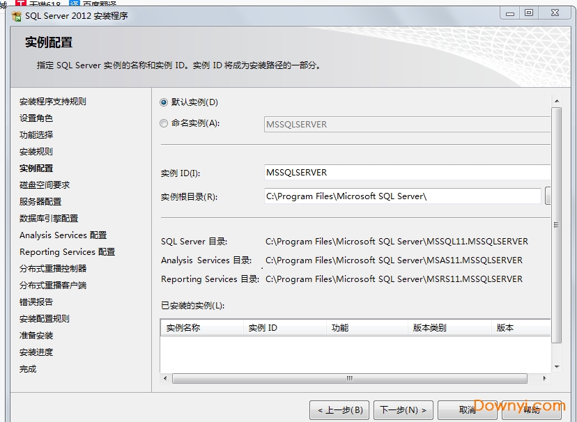 默认实例,可以更改文件夹位置