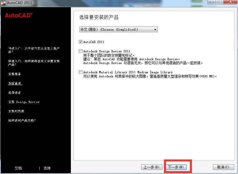 3.成功打开AutoCAD2011的安装界面:选择“安装产品”