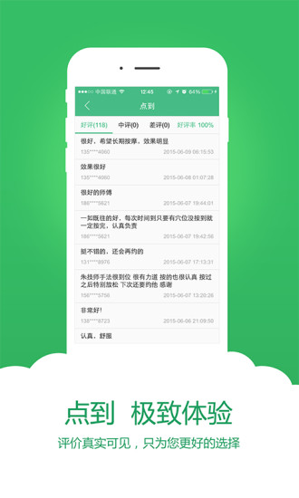 服务质量是我们的核心追求,我们严格把关服务的质量,聘请航空、酒店领域经验丰富的培训师对技师进行礼仪培训,确保用户得到最优质的服务。与此同时,最低38元即可享受上门服务,长期发放优惠代金券,让您以最低的价格享受高品质服务。