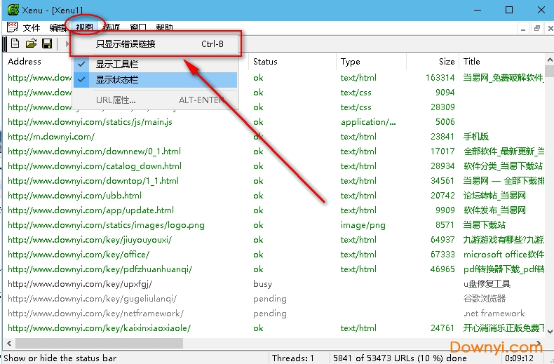 4.点击“确定”按钮即可开始执行,等待xenu执行完毕即可显示结果,其中: