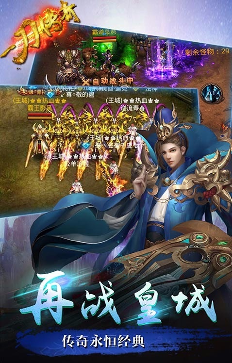 一刀传奇是一款由经典的传奇改编而成的手游,游戏的完美的还原了传奇端游的副本以及装备,超高的游戏爆率让每个玩家都有机会获得神装,不花钱也能玩的爽快刺激。