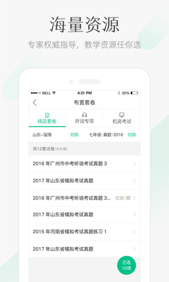支持教师随时随地布置、检查作业和考试,系统自动批改出结果、一键奖评。最大限度释放教师精力,通过手机轻松提高教学效率。