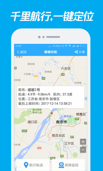 查看船舶历史航行轨迹,绘制带有指向的轨迹路线图,让您随时随地在线查看。