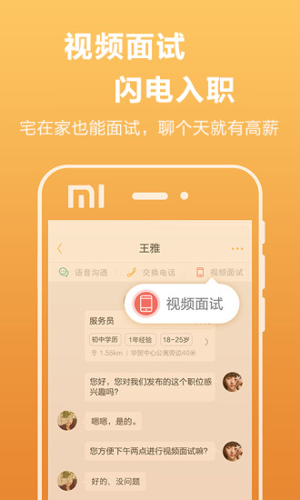 沟通顺畅快捷:直接面对店长,即时聊天、视频面试、当天入职