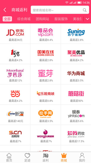 2、商城返利:京东等数百家知名商城购物拿返利。
