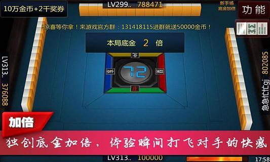 來遊戲-2013最新武漢麻將遊戲。用紅中皮子杠規則、玩遊戲,打比賽,輕鬆贏千元現金。 遊戲規則:武漢麻將起源於武漢地區,除一般番型外,特色玩法如賴子、紅中杠、皮子杠等,富有別致趣味性。來遊戲“武漢麻將HD”是一款極具創新的在線棋牌遊戲,遊戲節奏快、刺激感強,再配合底金加倍翻番等遊戲設定,帶給玩家極強的遊戲快感和成就感。