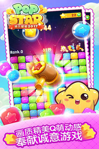 消灭星星2017最新出炉休闲益智游戏,全新的游戏引擎,飞一般的运行速度。消灭星星2017的特效华丽,画风清新可爱,用最精致的画面带给你最好的视觉享受。新版本的强势更新,展现你最强的力量!喜欢的小伙伴欢迎前来体验。